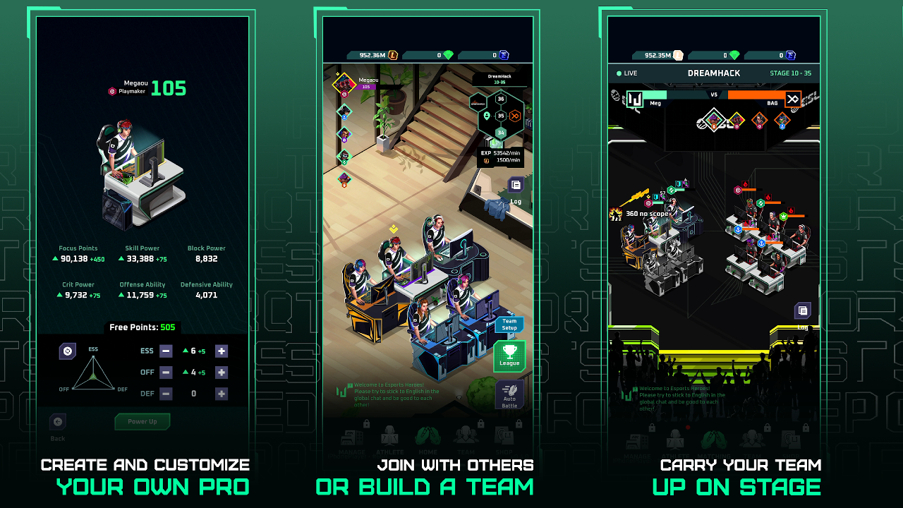 Status Effects, Gear, Stats, Damage Formula, Rewards (Idle/League), Feature Unlocks, Level Up,